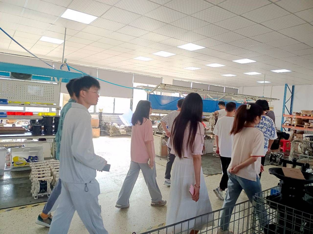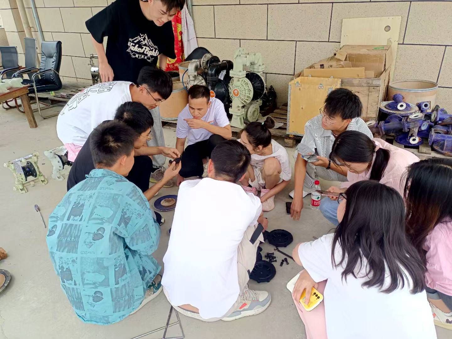 為幫助同學們盡快熟悉邊鋒環(huán)境,19日上午,在工學院張院長的帶領(lǐng)下,同學們參觀了邊鋒園區(qū)的辦公大樓、生產(chǎn)車間、食堂宿舍等工作與生活區(qū)域。并在張院長的講解下了解了邊鋒發(fā)展歷史及隔膜泵行業(yè)發(fā)展現(xiàn)狀,通過車間工作人員的現(xiàn)場交流與講解,初步加強了對于隔膜泵領(lǐng)域理論與實踐的認知,使得同學們對于未來的就業(yè)規(guī)劃有了更進一步的認識。